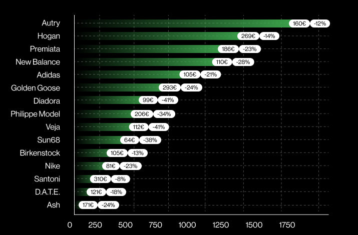 1. Autry si conferma in grande crescita, nonostante molti si aspettassero una flessione. I modelli funzionano molto bene grazie alla versatilità: può essere indossato sia con un abito che con un jeans. Inoltre, la nuova versione running sta già portando risultati positivi, affiancando il modello più venduti come la ormai sotrica Medalist.